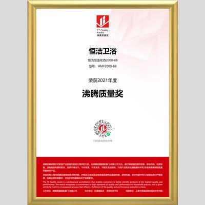 獎 項:沸騰質(zhì)量獎-恒潔恒溫花灑2000-88HMF2000-88