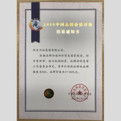 獎 項:衛(wèi)浴領(lǐng)軍品牌——恒潔