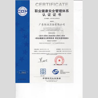 獎 項:廣東恒潔-職業(yè)健康安全管理體系認(rèn)證證書
