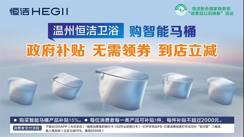 同時,恒潔以“恒潔煥新IP”、“國潮衛(wèi)浴 雙節(jié)鉅惠”、“家居煥新補貼”及“家裝廚衛(wèi)煥新”等為活動主題,在北京、上海、武漢、西安、杭州、合肥、貴陽、南京、鄭州、哈爾濱等多個城市加快以舊換新步伐,勢將掀起廣泛的換新浪潮。在此過程中,消費者既能享受到政府補貼,還能獲得恒潔提供的專屬補貼,這種政企雙重補貼的超級福利,讓消費者在換新之旅中收獲滿滿!