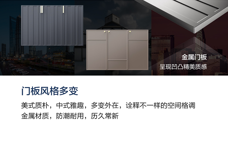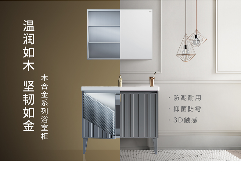 - 木合金柜體,防水防潮,隨心安放;表面覆膜工藝,3D觸感, 溫潤如木;