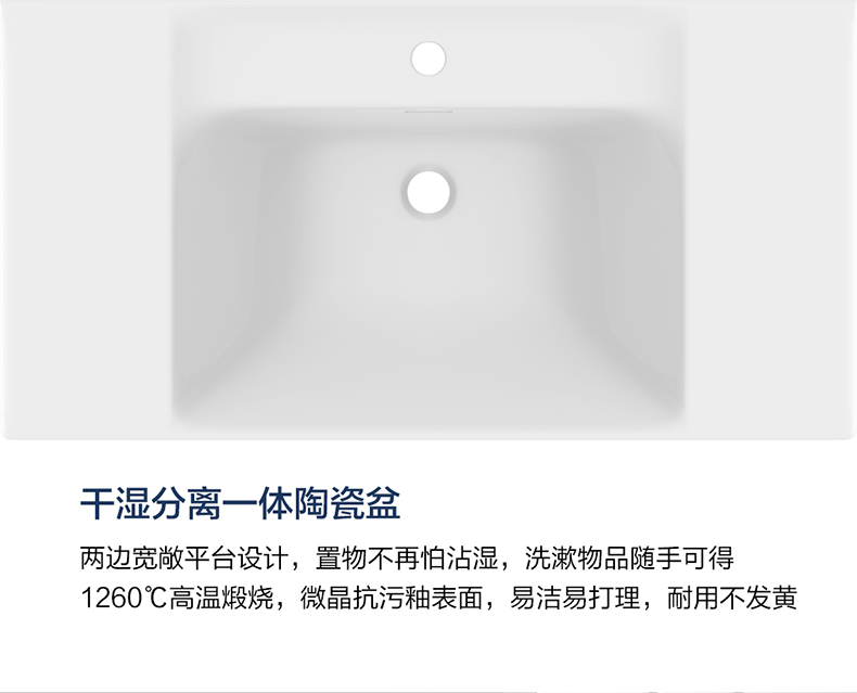 - 干濕分離一體盆,置物不再怕沾濕;兩邊寬敞平臺設計,洗漱物品隨手可得