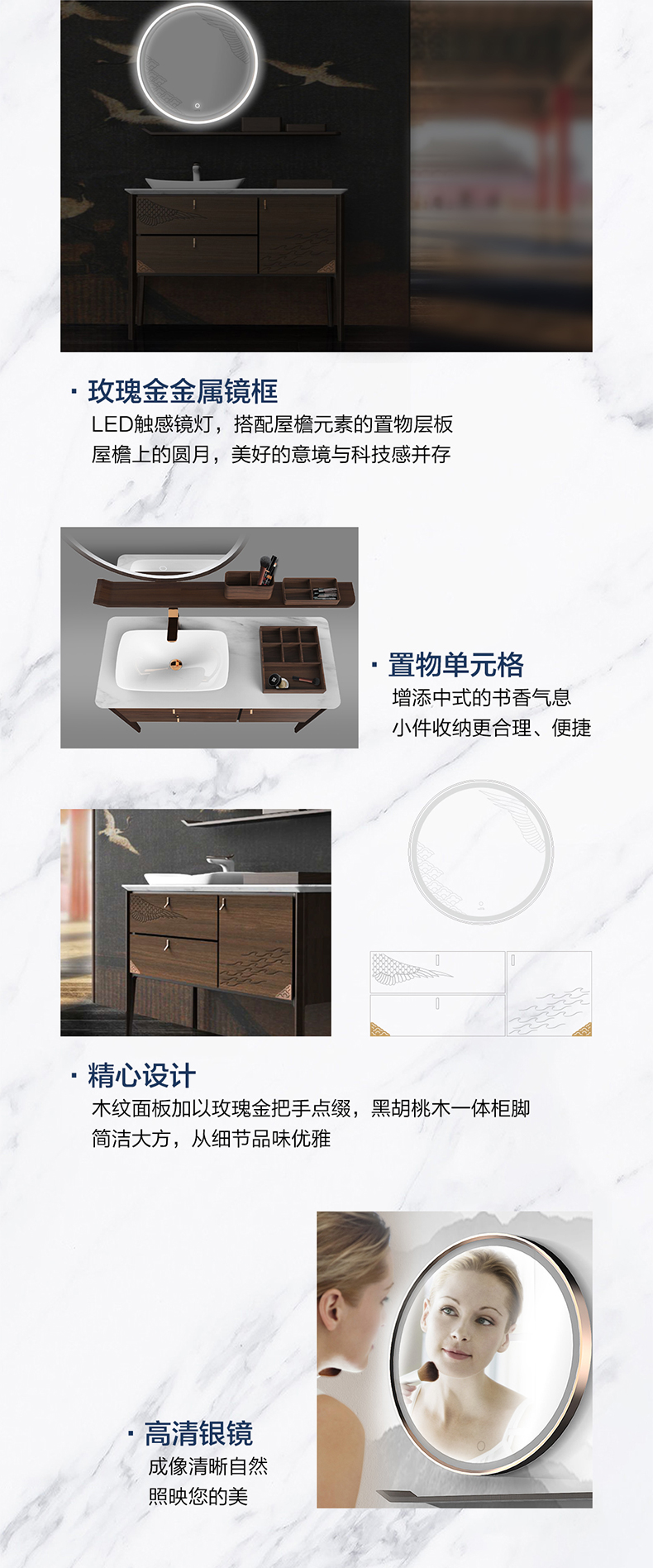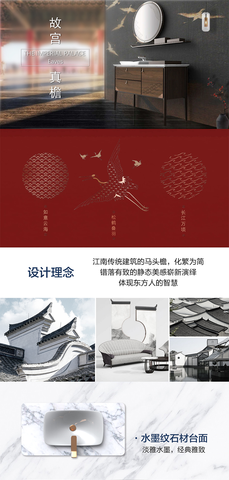- 汲取仙鶴、祥云、水紋等傳統(tǒng)中式宮廷元素,締造新中式美學(xué)衛(wèi)浴空間;